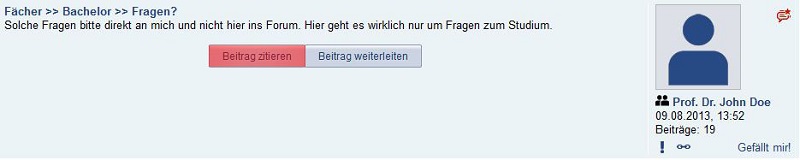 You can quote your own posts by clicking on “Beitrag zitieren”, edit them with “Beitrag bearbeiten”, delete them by clicking “Beitrag löschen” and forward them with “Beitrag weiterleiten”.