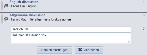 If you are tutor or higher authorised you can set up categories and areas, where students can create topics and discuss them. If you want to create a topic, an area is needed which in turn can be created in categories.
