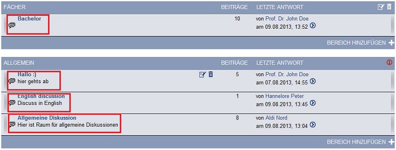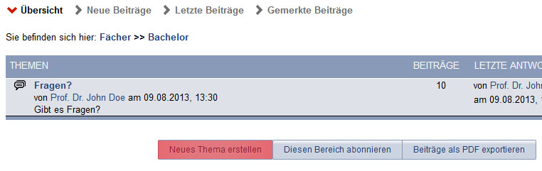 After you created your area, the Stud.IP-user (besides the readerstatus) can create topics and discuss them.