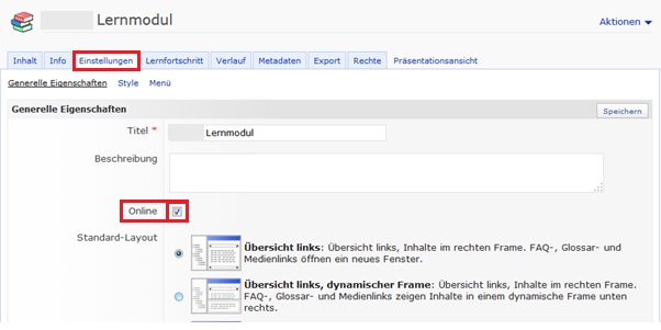 Consider the option "Online" at "settings": Set a tick as soon as you want to make the learning modul accessable (e.g. when you connect it to a course).