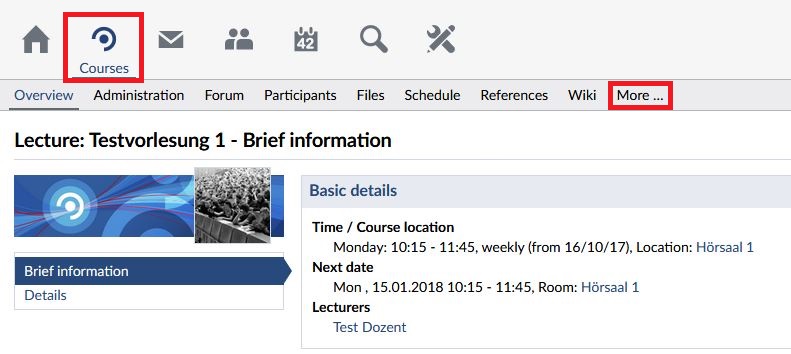 If you are a lecturer or tutor of a course, you can add Stud.IPad to your course via plug-in administration. To do this, first click on "More ..." in your course