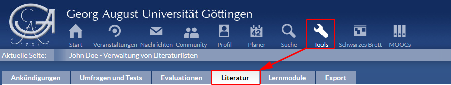 2. Click on my courses. Choose the cours from that you want to take the list of references.