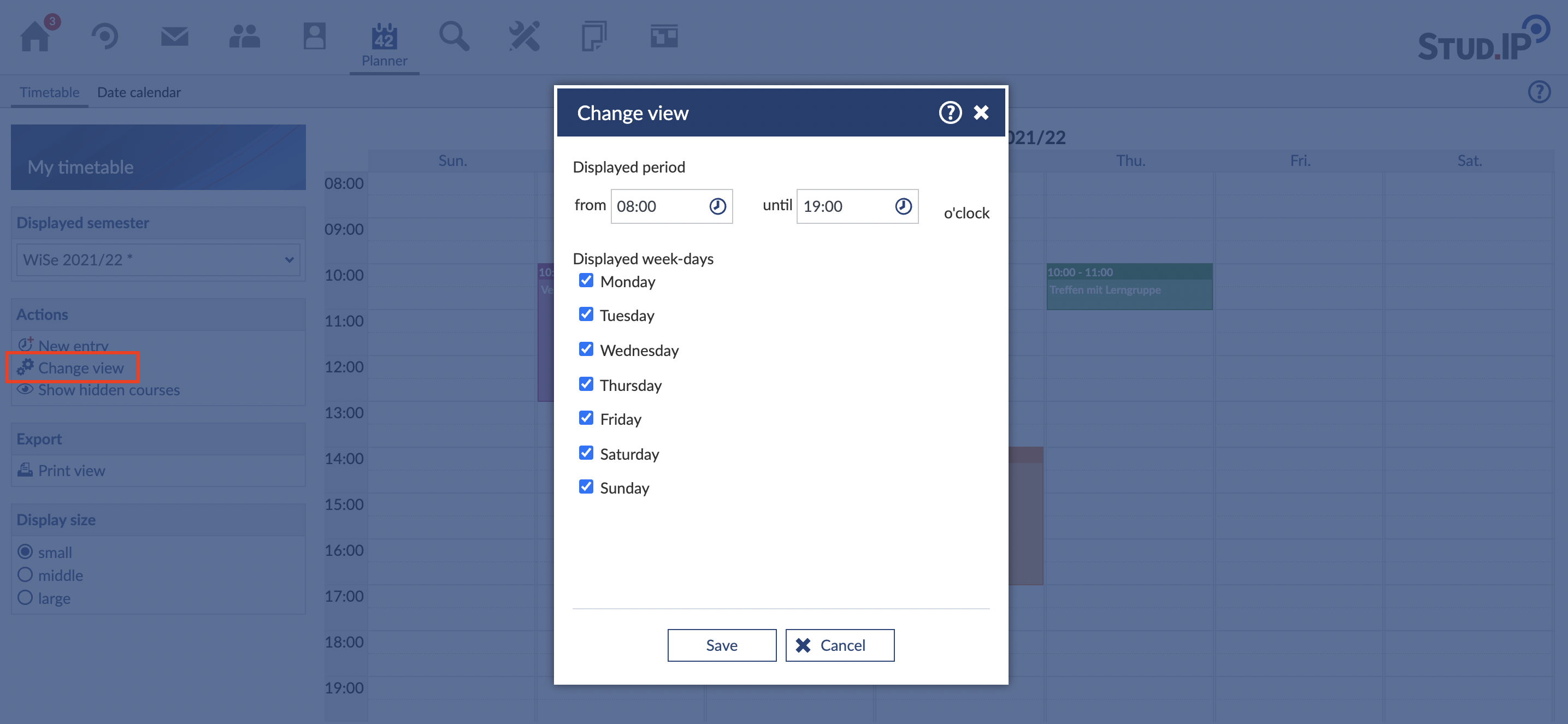 Of course you can also edit your timetable. For the changes you need to open your timetable. Then you press the button change view.