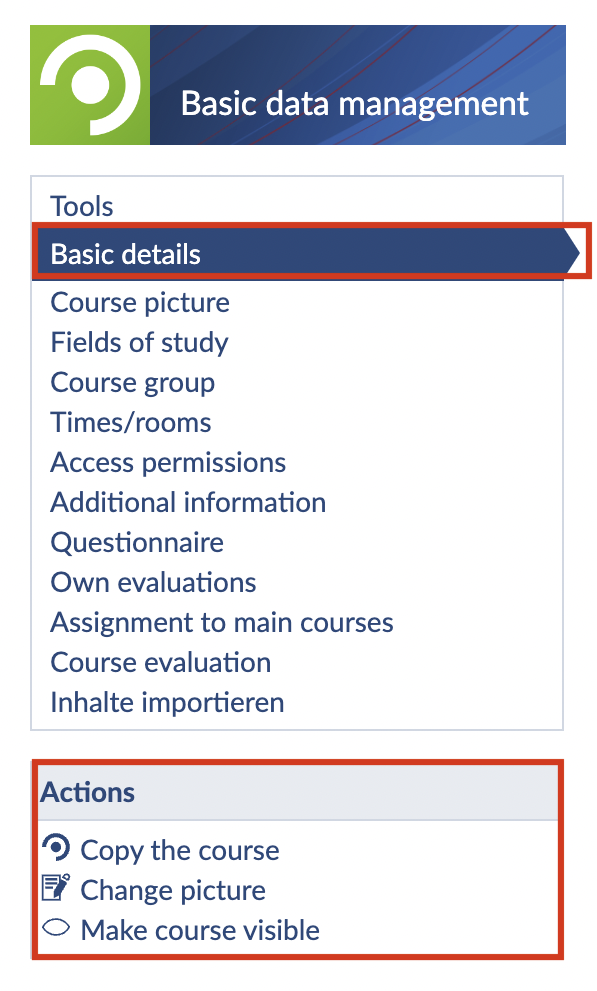 Then select the Basic details tab. In the acitons box you can see the Make course visible option. Click on that and the visibility will be changed.
