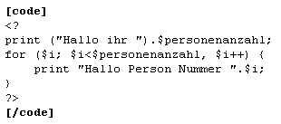 That's true, the Code Tag is thus another shortcut for this. The text is shown in monospaced style so that indentions can be correctly displayed and so that Stud.IP will not interpret the programme code as formatting instructions. Additionally, if the core is PHP code, Stud.IP even ensures that it is appropriately highlighted.